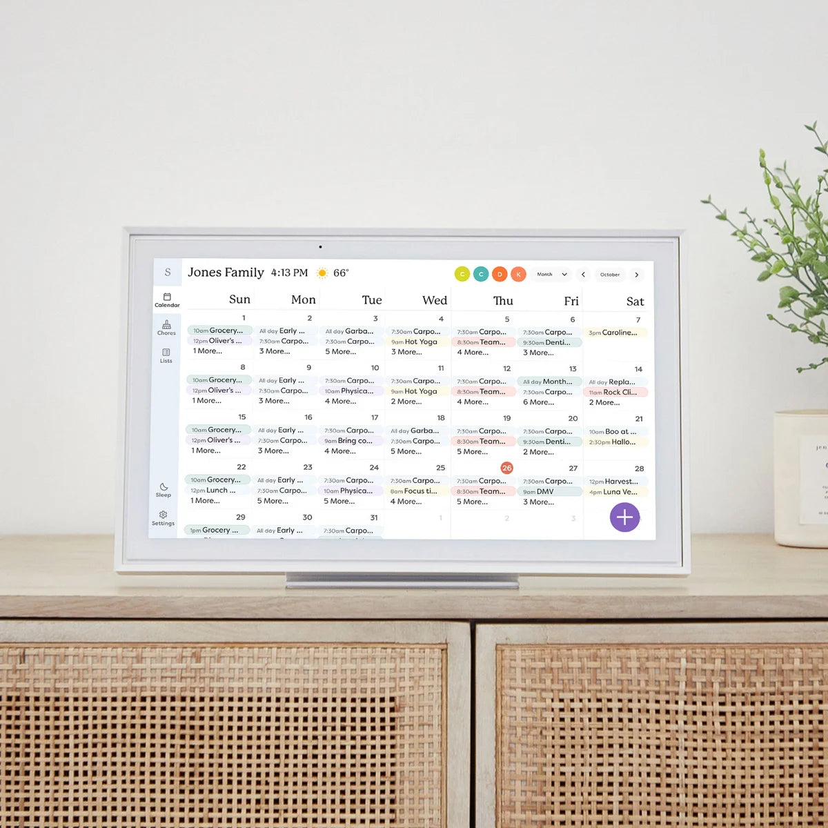Le calendrier Skylight est un écran tactile intelligent qui affiche tous les événements du calendrier, les tâches, la liste des cours et les corvées ménagères pour vous aider à organiser l'horaire chargé de votre famille. Il est doté d'un écran tactile de 15 po en haute définition, ce qui ajoute au décor de votre maison. De taille idéale, on peut le poser sur le comptoir de cuisine ou le fixer au mur.